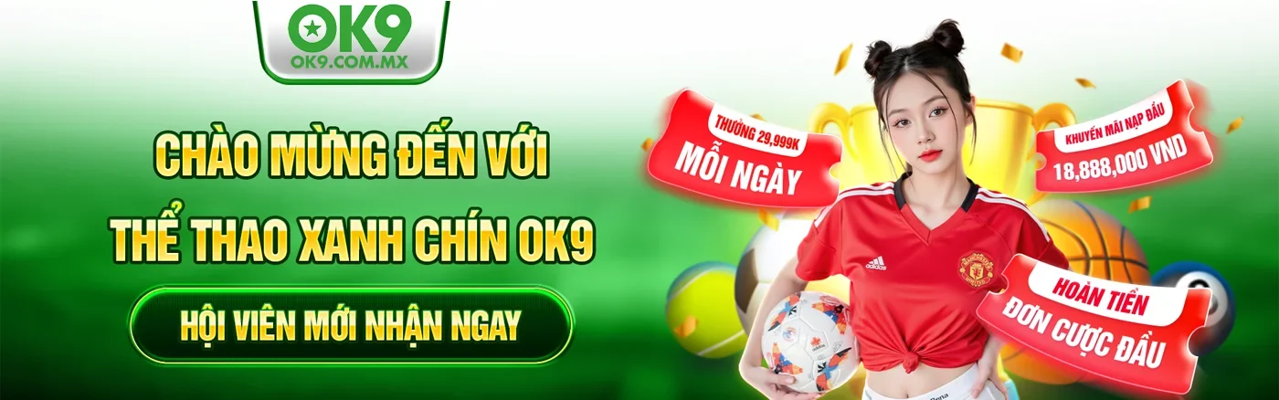 - Thưởng nạp đầu lên đến 18.888.000 VNĐ, gia tăng vốn cược OK9 cực hấp dẫn.